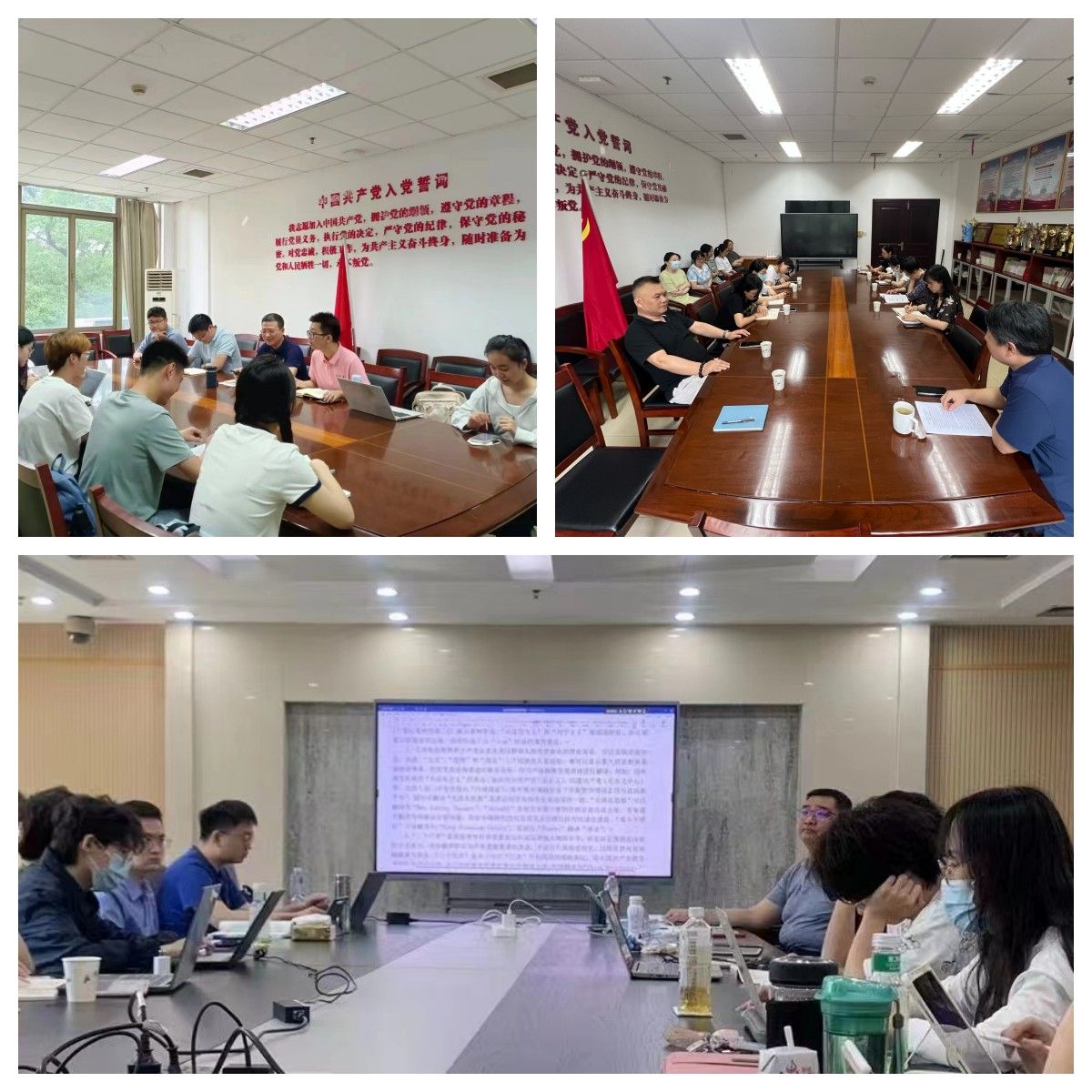 宪法学与行政法学教师党支部成员交流党的二十大报告学习体会。祝捷从大会主题、问题导向、重要战略和主要议程四个方面介绍了党的二十大精神。祝捷结合法学学科特点,对宪法与行政法学教师和同学学习贯彻党的二十大精神提出了具体建议。