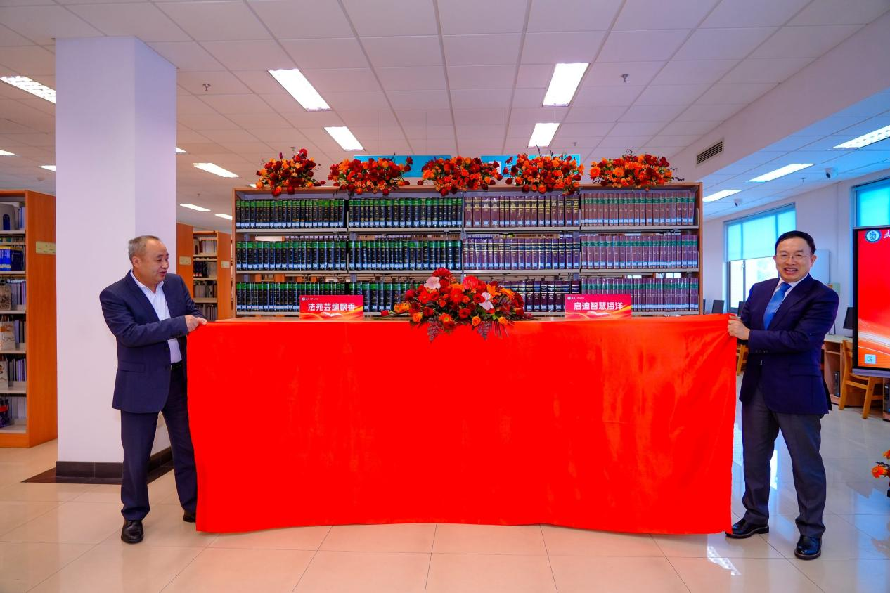 由肖永平与朱征夫共同为捐赠书籍揭幕。随着红绸的拉开,一本本承载着法学智慧的书籍缓缓展现在师生们眼前,它们不仅是知识的载体,更是前辈对后辈的期望与寄托。随后,李霄鹍和秦天宝代表成人影视片