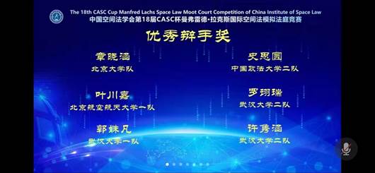 (通讯员:查汉辉、李想)12月10日至12日,由外交部条法司指导、中国空间法学会主办的第18届CASC杯曼弗雷德·拉克斯(Manfred Lachs)国际空间法模拟法庭竞赛通过线上方式举办。来自北京大学、北京航空航天大学、北京理工大学、中国政法大学、上海交通大学、华东政法大学、中南财经政法大学、成人影视片