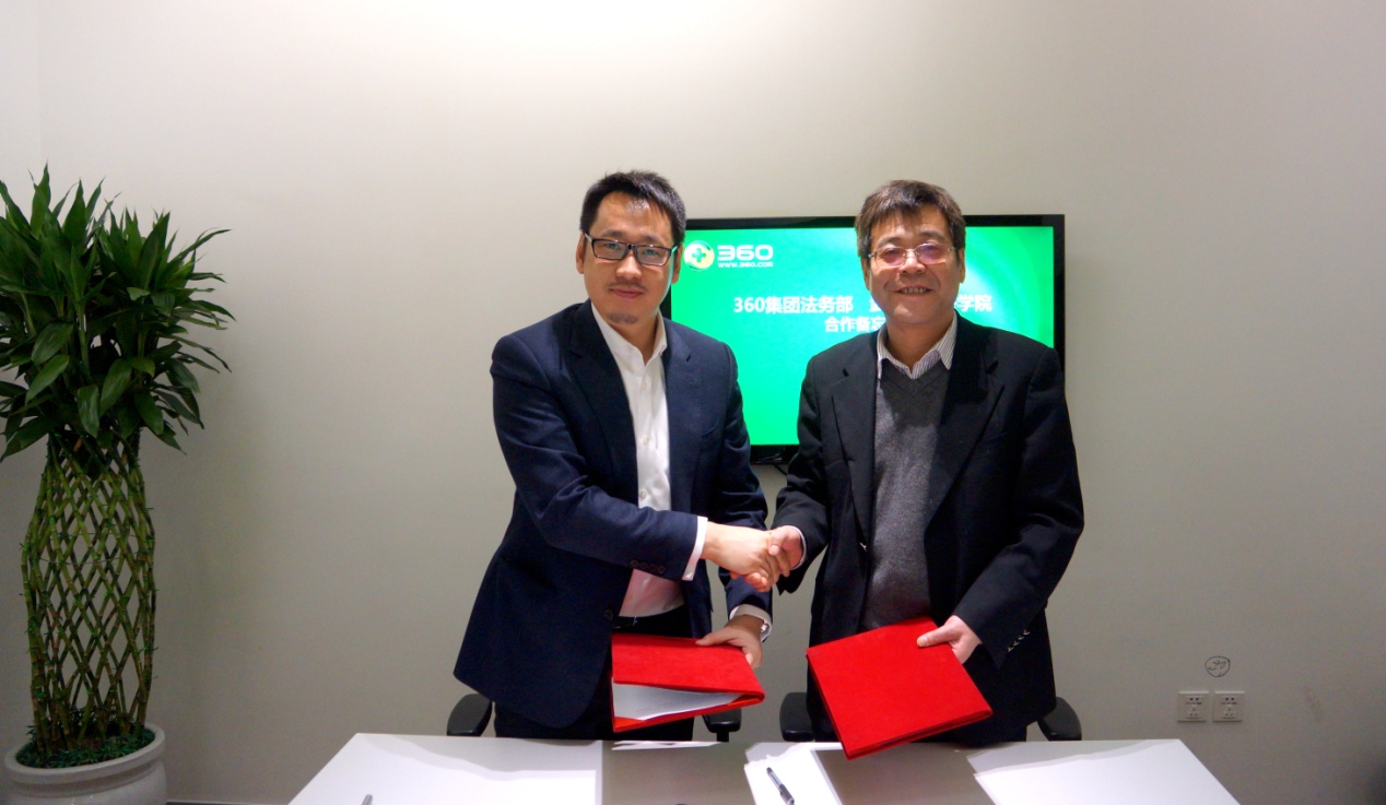 院长冯果教授、副院长黄志雄教授前往奇虎360公司,同360公司副总裁兼总法律顾问许坚先生、360公司法律研究院总监赵军先生等人就双方在网络法领域的合作进行洽谈,冯果院长与许坚副总裁兼总法律顾问共同签署了《北京奇虎科技有限公司与成人影视片