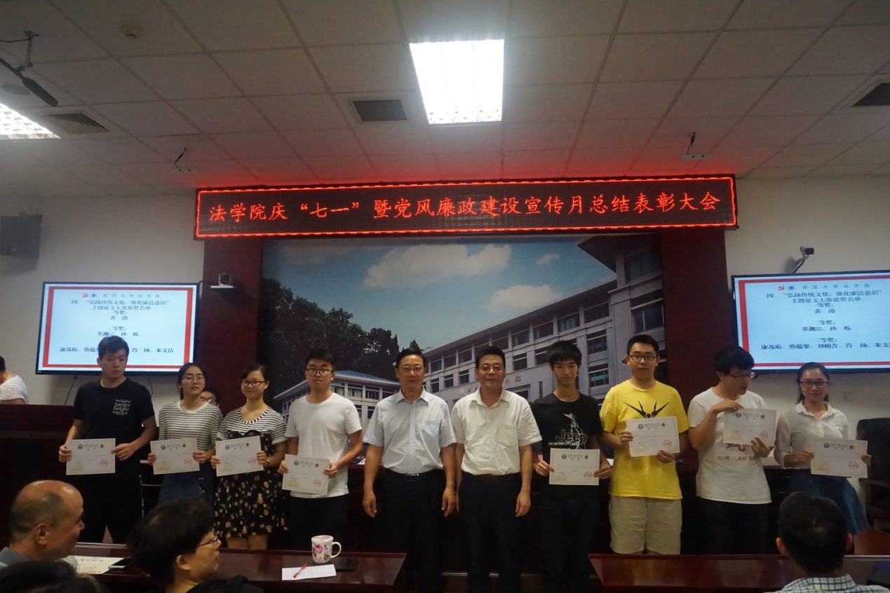 首届“弘扬传统文化,强化廉洁意识”主题征文大赛、设计大赛获奖学生进行了表彰。