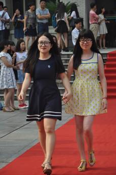 大楼门前广场上洋溢着笑语欢声。早上7点30分,毕业秀正式开始。2015届毕业生们盛装而出,携亲朋好友与爱人,一起踏上红毯,或步履昂扬,或笑容满面。工作人员还扮起了最近备受喜爱的电影人物“大白”,与大家合影留念,共度难忘时光。掌声此起彼伏,闪光灯不断。一腔热血如红毯般绚烂,昭示着毕业生们就此走过一段青春之路。