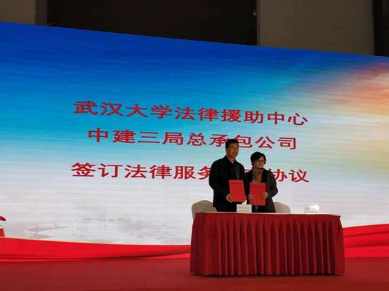 教授、法律援助中心主任项焱老师与中建三局工会主席在协议上签字。随后现场的志愿者为劳务工友们发放了法律知识手册,并与大家合影留念。