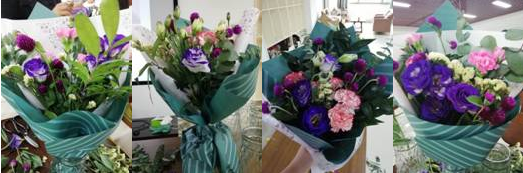 整个活动分为三个部分,首先是老师介绍插花理论和花料、色彩的相关搭配,然后大家在老师的指导下亲自动手练习,完成一个自己的插花作品,最后是作品拍照和评奖环节,优秀的插花作品获得了精美的小礼品。