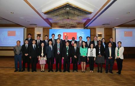 (中国代表团团长徐宏、中国驻肯尼亚大使刘显法、肯尼亚司法部长基图·穆盖与代表团成员和中国驻肯尼亚使馆部分工作人员合影)