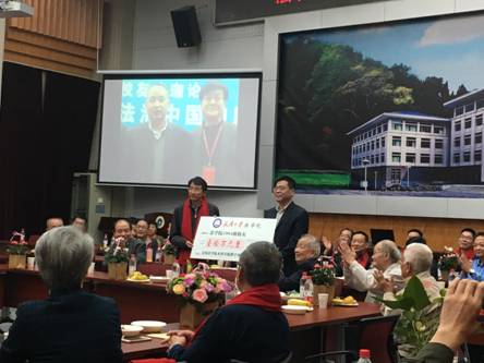 随后,当年的授课老师一一发言,陈汉光老师提到法律人要保持高尚的思想品质,在这个前提下去服务,为老百姓做事,为国家做事,为党做事。余能斌老师用一副对联“放飞而立,自成高选,为中华复兴南征北战,建功而立业。正知天命,胸怀天下,向前辈学习东斗西行,全道取真经”来表达对各位校友的祝愿。之后陈晓枫、喻伟、倪晓阳、余敏友、张湘兰几位老师也分别表达了对校友们的殷切希望和真诚祝愿,希望大家在未来有目标有梦想,仍能保持书生的纯真与执着。最后成人影视片 党委副书记黄丽用三个词——“欢迎,感谢,祝福”表达了对校友们返校的祝愿。