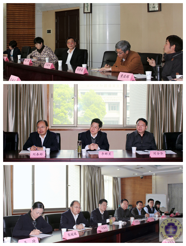 院长冯果,江国华教授、李傲教授、刘学在教授、项焱教授、胡芬副教授、黄启辉老师等参加调研座谈。