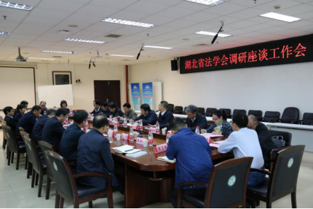 On October 16, 2019, Hubei Law Society made investigation into our school. The Symposium was held in 325 conference room. Fu Dehui, the president of Hubei Law Society, Liu Taiping, the secretary of the party group, Wang long, the secretary general and directors of the other offices, Zhou Yezhong, the vice president of Wuhan University, sun Deyuan, the secretary of the Party committee of the school of law, Feng Guo, the dean of Law school, professor Qin Qianhong, professor Jiang Guohua, professor Ning Lizhi, professor Qi Tong, professor Zhang Rongfang, professor Xiong Wei, and associate professor Li An'an attended the meeting. The symposium was hosted by Feng Guo.